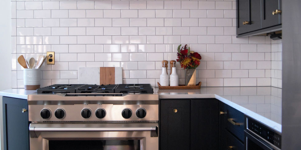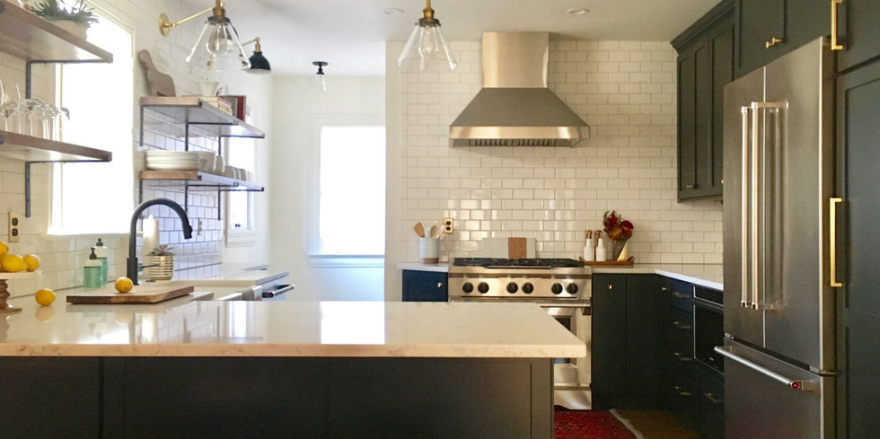 The young couple who hired AWID knew their new-to-them home had great bones, but converting the kitchen and master bathroom into spaces that suited a more modern lifestyle while maintaining it’s vintage character required collaboration with a professional. AWID selected all the finishes and fixtures throughout, including those navy kitchen cabinets.